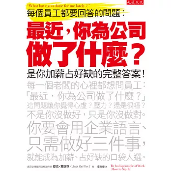 成功是熬出來的![]() | 最近,你為公司做了什麼?:每個員工都要回答的問題,是你加薪占好缺的完整答案!![]() | 精英培養手冊![]() | |||